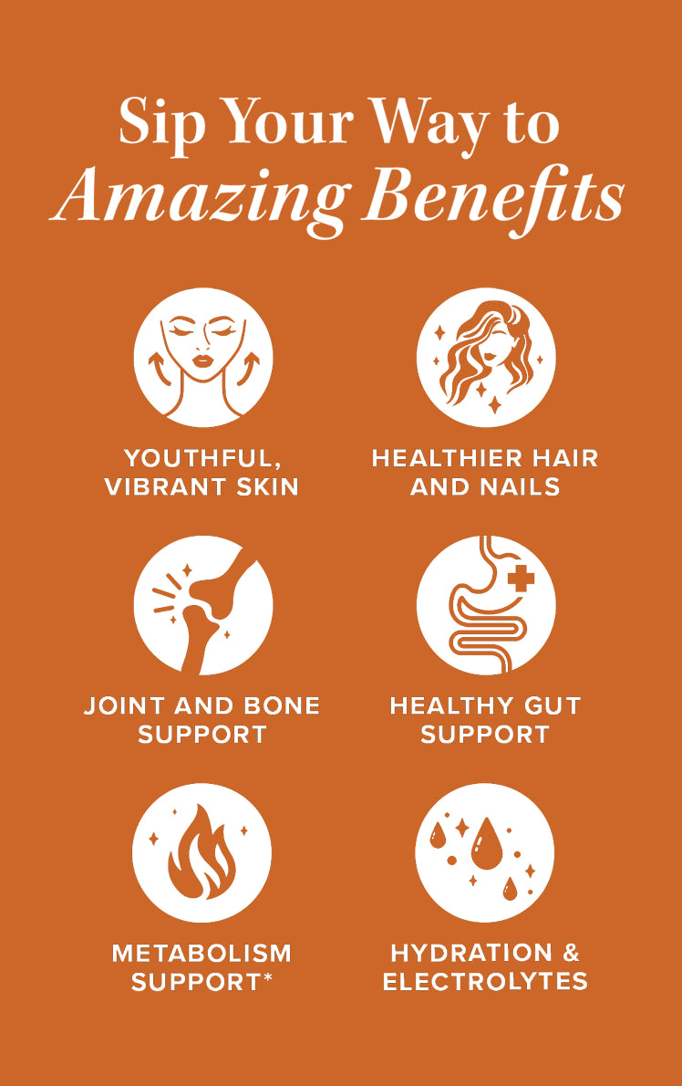 Bone Broth Collagen is a savory collagen supplement made from real, slow-simmered chicken, beef, or mushroom bone broth. Each serving delivers 16g of collagen protein to support joints, skin, and gut health.