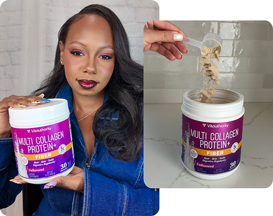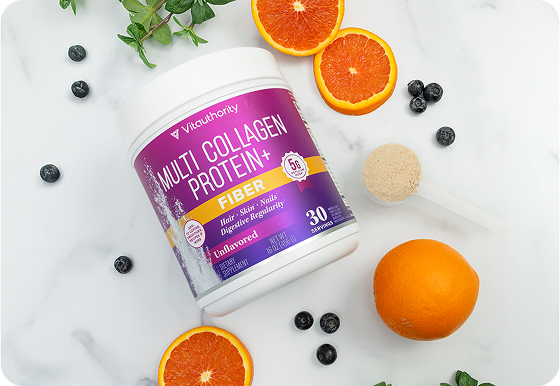 Daily wellness made simple. Vitauthority Multi Collagen Protein + Fiber combines 5 types of collagen for hair, skin, nails, and joints with 5 g of psyllium husk fiber for digestive regularity. Vitamin C and hyaluronic acid add hydration and collagen-boosting support. Gluten-free, dairy-free, and lab-verified, this unflavored powder blends seamlessly into coffee, smoothies, and recipes for beauty and gut support in one scoop.